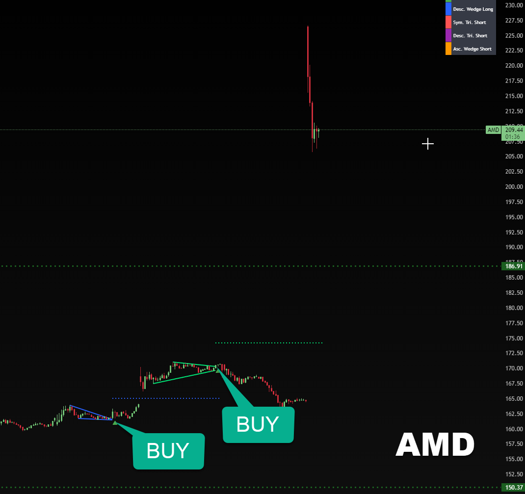 Finds AMD’s setup BEFORE it breaks. Triangle patterns form when price coils tight. TriTrader+ highlights them in real time.