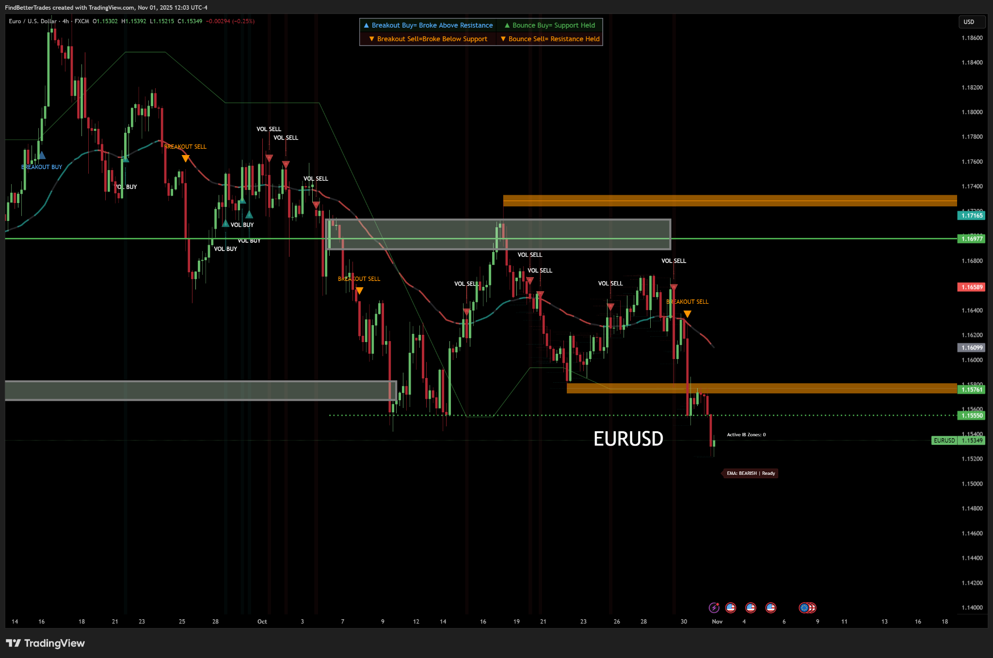 The Euro continues trading to the downside after breaking below the 1.15550 mark the bulls tried to hold. Expectations that price will continue trading below 1.1500 in coming days are highly likely as euro weakness accelerates.