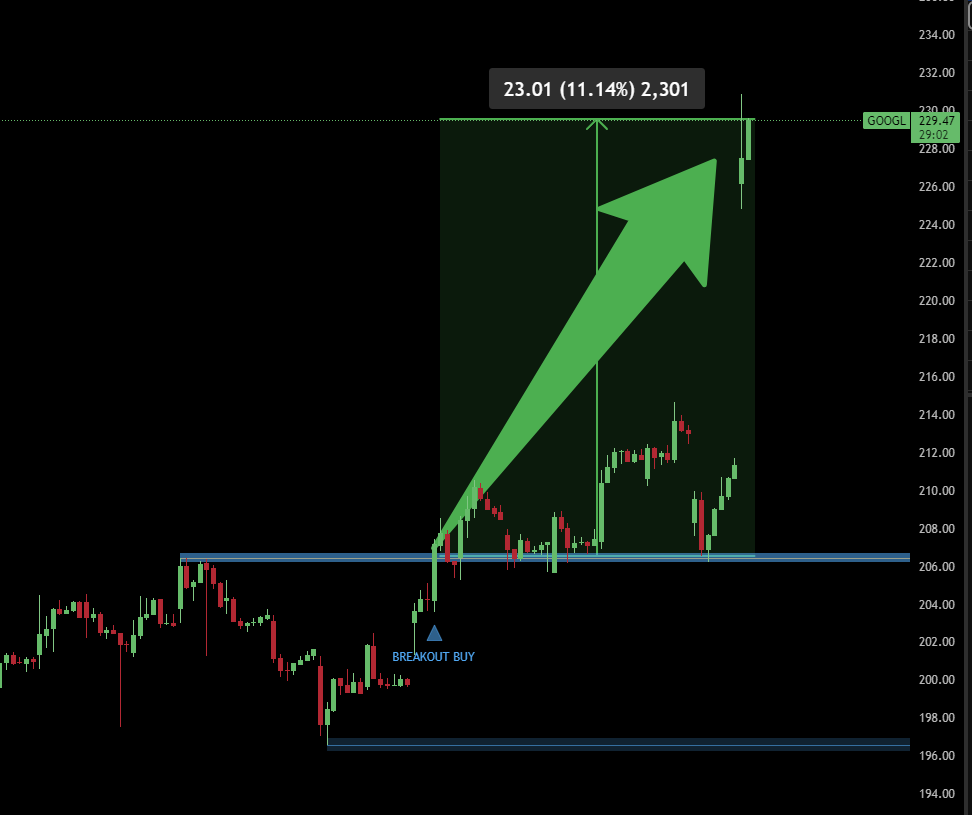 That green arrow? It’s GOOGL up +11.14% after a clean MagniZone Breakout Buy signal.